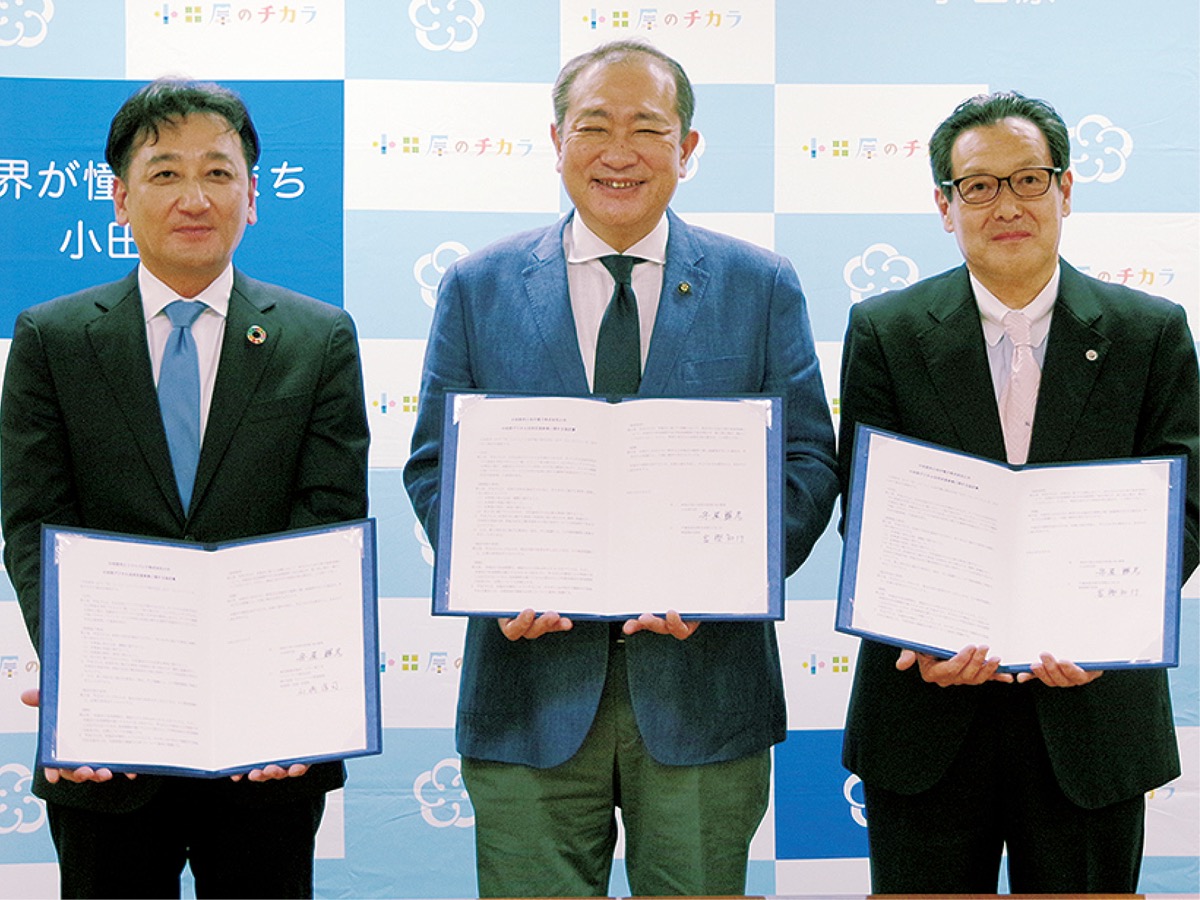 小田原市は8月6日、高齢者のスマートフォンやオンラインサービス活用推進などを視野に、市内で携帯電話事業を運営するソフトバンク(株)、田中電子(株)と「デジタル活用支援事業」に関する協定を締結した。両社は今後、高齢者などの不安解消やオンラインサービス活用に向けた講習や相談業務に協力していく。