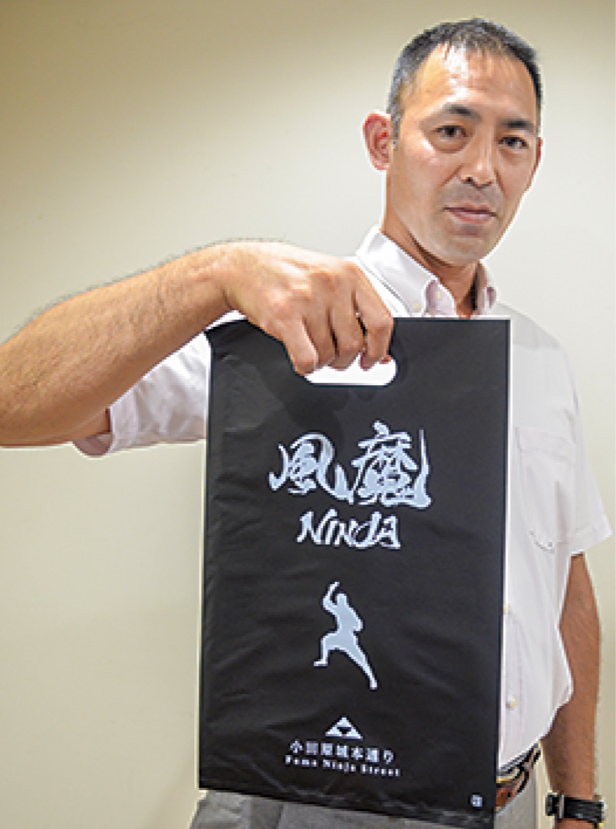 小田原三の丸ホールがオープンする9月5日(日)から、「小田原城本通り」の物販店(一部除く)で、風魔忍者のロゴをあしらったオリジナル袋を配布する。1500枚がなくなり次第終了。