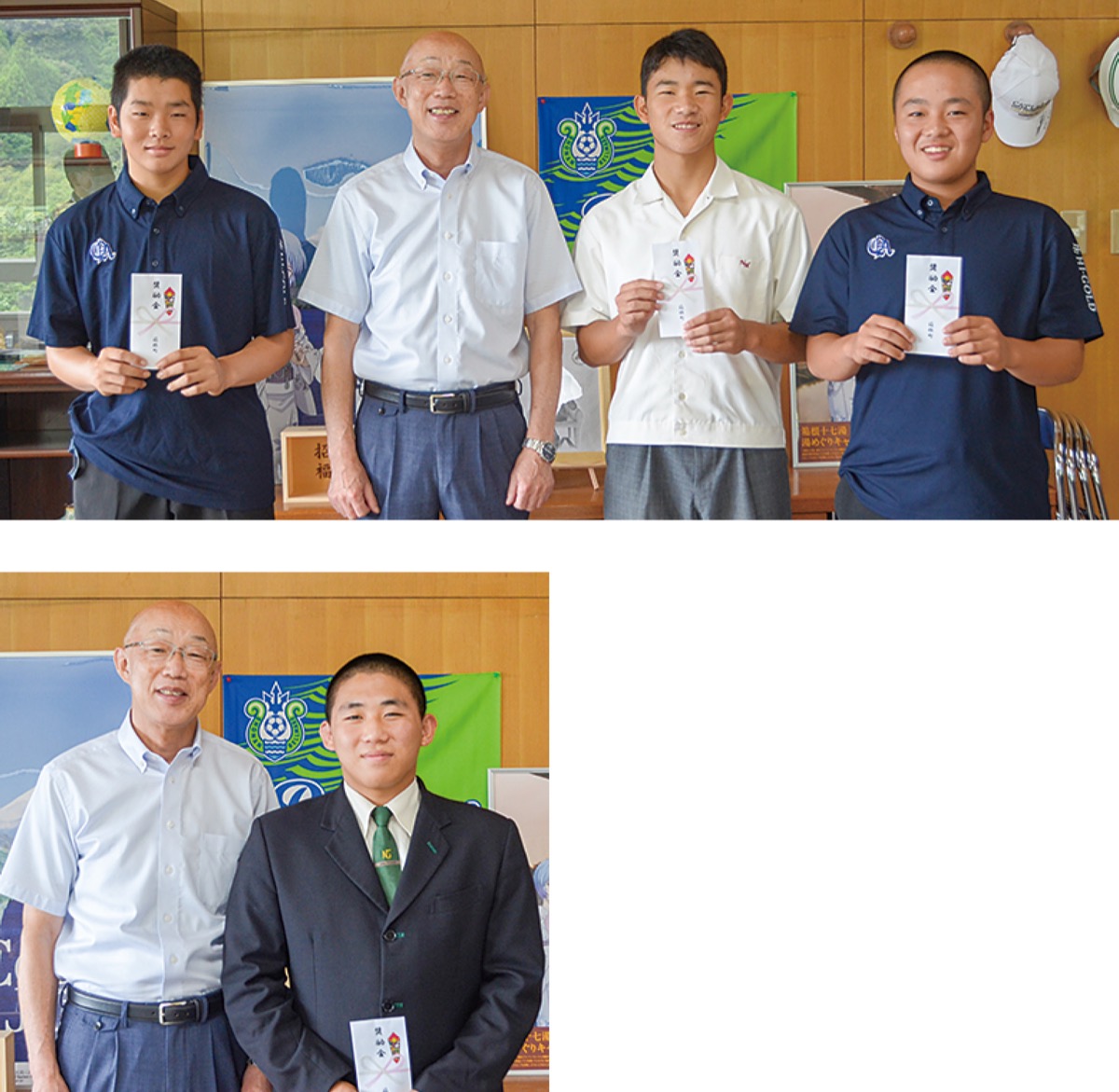 奨励金が贈られたのは、小澤颯大(そうた)さん(箱根中3)、勝俣柊星(しゅうと)さん(箱根中3)、瀬戸匠さん(日本大三島中3)、