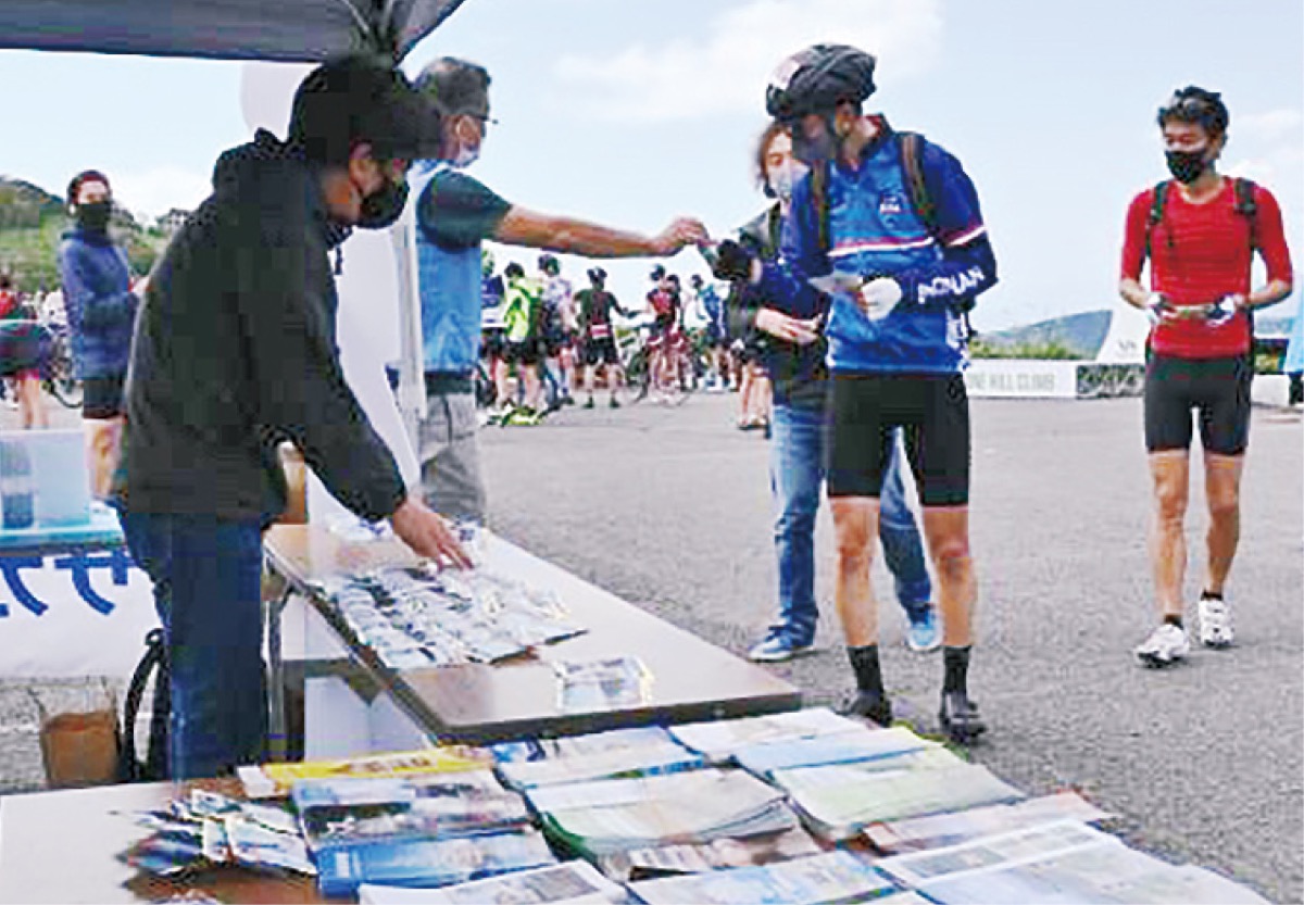 アネスト岩田ターンパイク箱根を自転車で駆け上がる「箱根ヒルクライム」が行われた10月3日、地元有志が全国から集まったサイクリストに小田原と箱根の楽しみ方や魅力をPRした。
