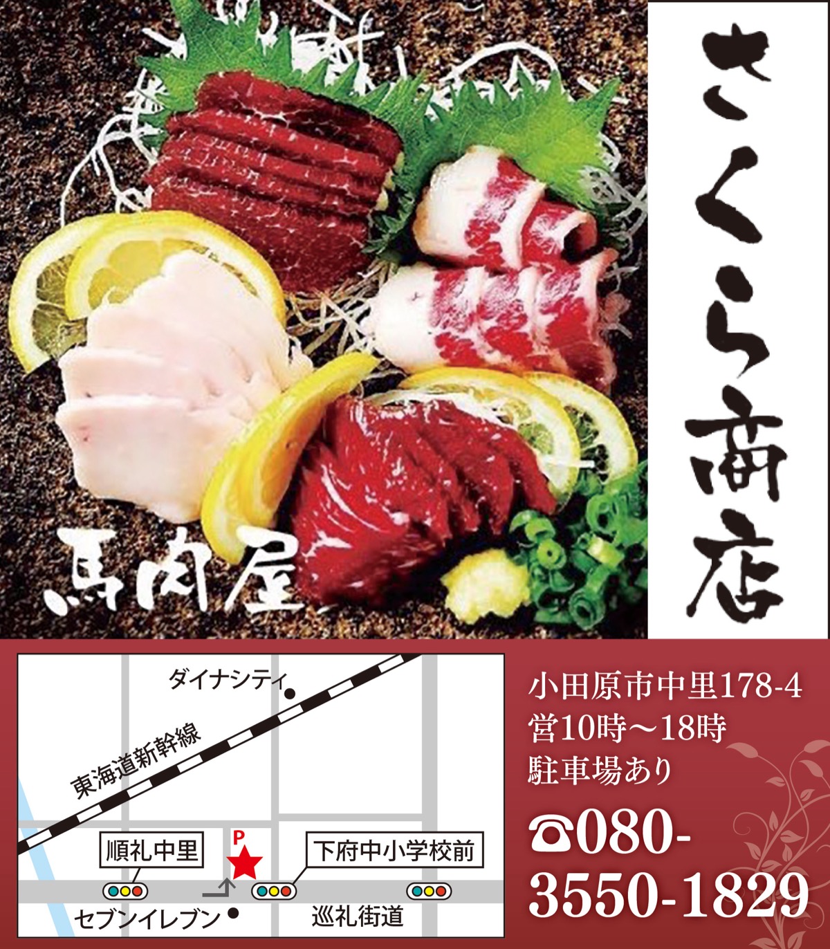 巡礼街道沿いに今年8月オープンした馬肉専門店「おいしい馬肉さくら商店小田原店」では、タウンニュース読者限定のプレゼント企画を行っている。期間は10月末まで。LINEの友達追加でユッケをプレゼント(詳細は店頭まで)。