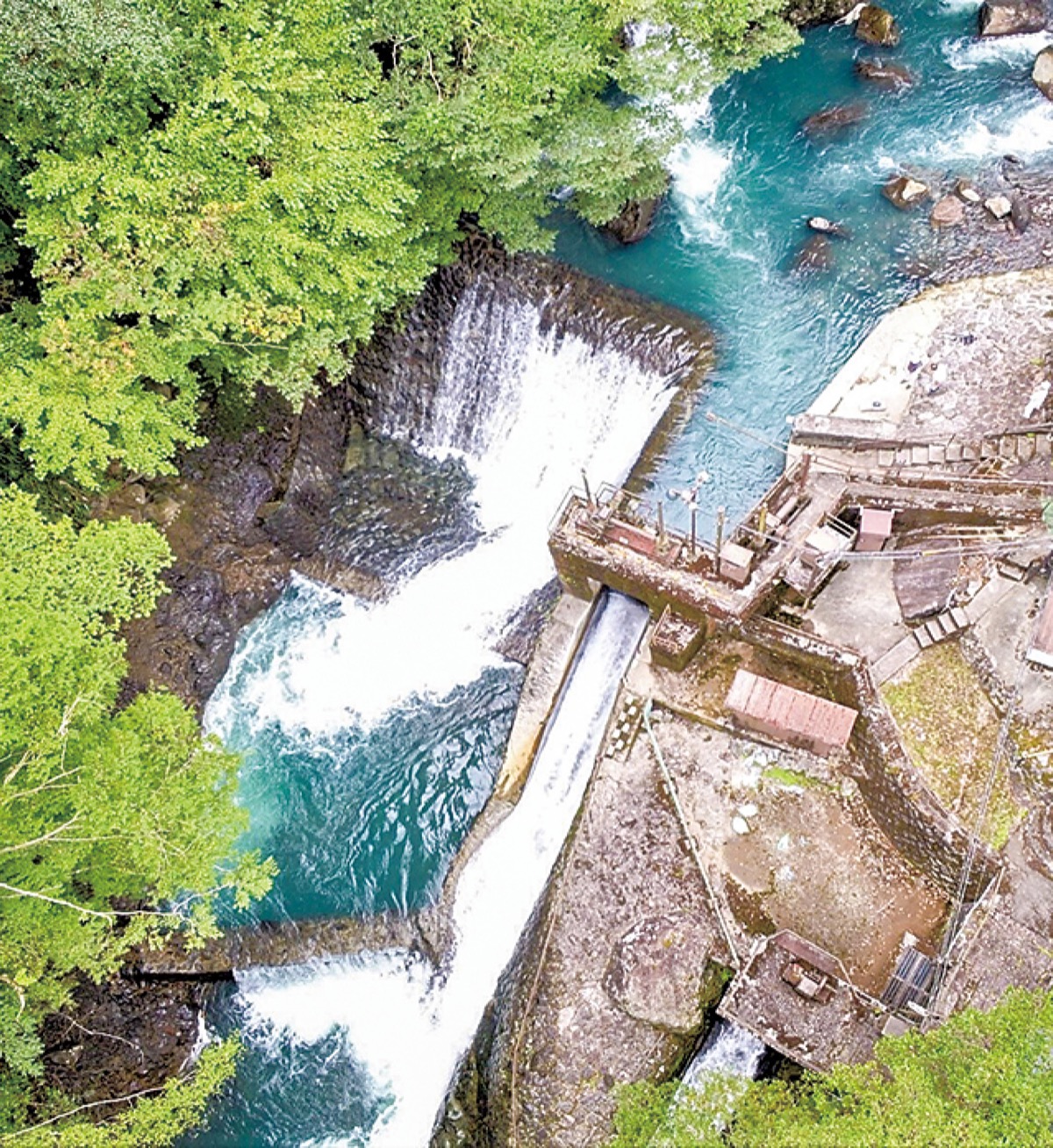 塔之沢発電所と関連施設は1909年に建設され、現在稼働している発電所の中では県内で最も古い。宮ノ下の早川取水堰堤から3・2Kmの導水路が発電所の上部に伸びており、水圧鉄管路は全長535m、落差214・29m。出力は建設当時3300kw(現在は3800kw)で、国産鉄塔により横浜までの遠距離特別送電を日本で初めて実現した。また、建設以来112年におよび旅館やホテル、鉄道などに電気を供給。「当時最新の発電設備や国産技術を多用するなど明治期における水力発電の基礎を作り、箱根の観光を支えてきた貴重な土木遺産」として認定された。