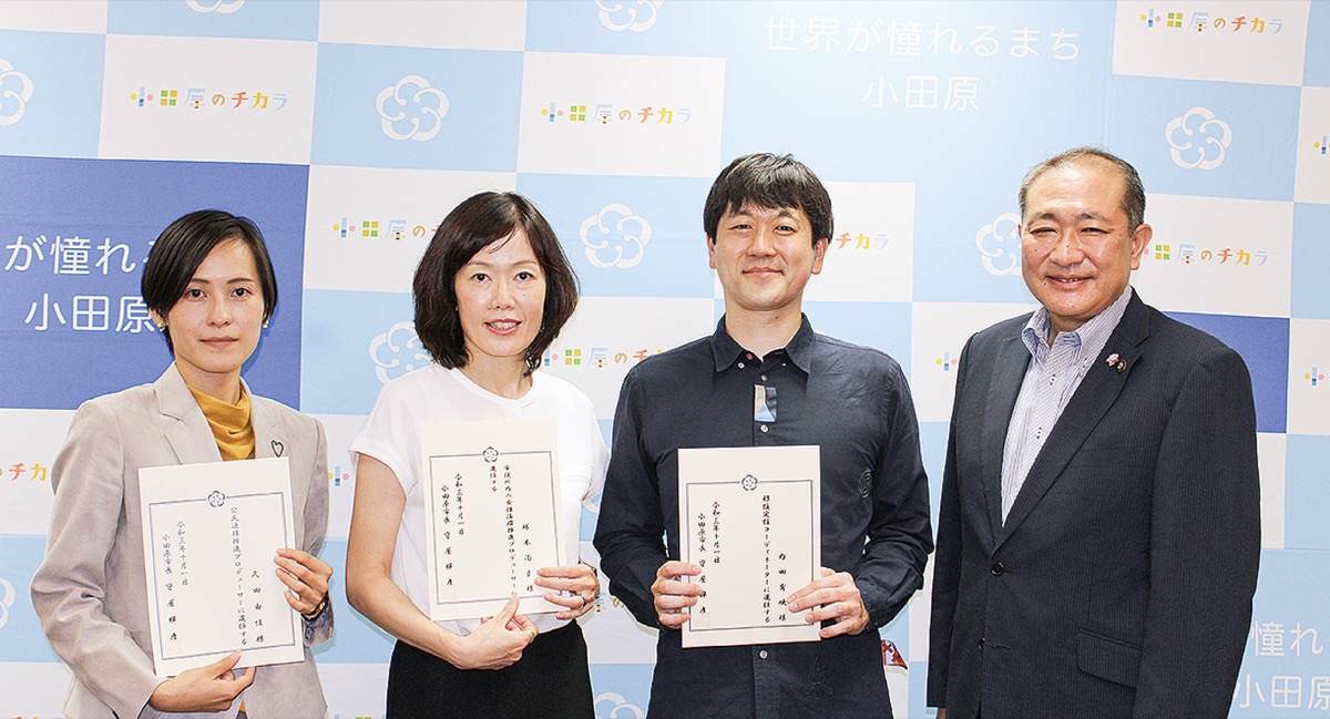 「移住定住コーディネーター」は、小田原市出身で地方自治体のプロモーション等に携わる内田有映さん(アソビュー株式会社執行役員)、「市役所内の女性活躍推進プロデューサー」は、仕事と家庭の両立や家庭教育、親子のコミュニケーション支援等を行う塚本尚子さん(株式会社ママプロジェクトJapan取締役副社長)が選ばれた。「公民連携推進プロデューサー」は、地域における実行支援等を手掛ける久田由佳さん(市内在住・株式会社llinno代表取締役社長)が就任した。