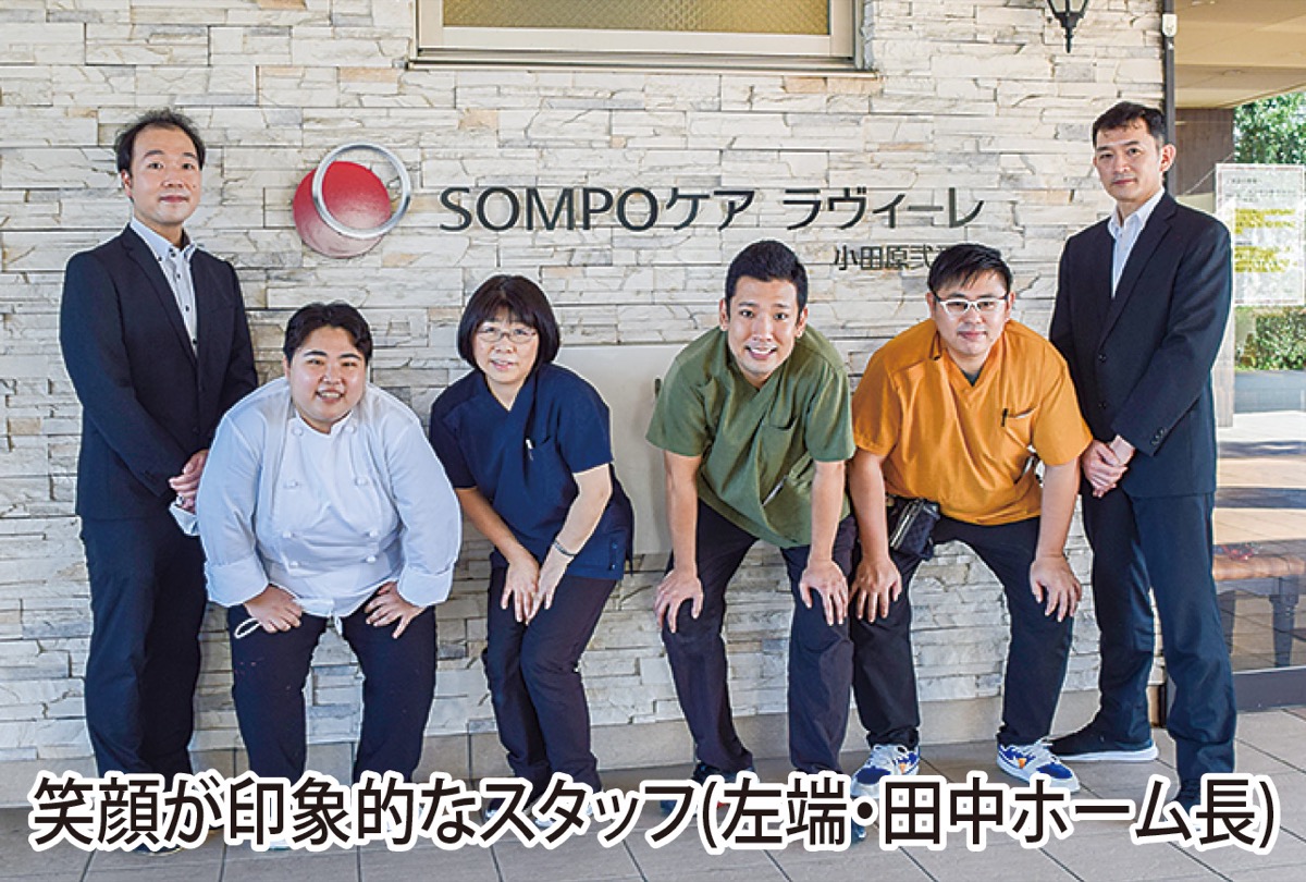 「SOMPOケア ラヴィーレ小田原弐番館」は、高級感漂うやすらぎと愉しみに満ちたホーム。開放感のある屋上やラウンジ、一部の居室からは雄大な富士山を眺められる。JR鴨宮駅から徒歩約7分とアクセスも良く、近隣にはスーパーやコンビニ、飲食店も多く、生活しやすい利便性の高い環境だ。経験豊富なスタッフが多数在籍し、その経験と知識に裏付けられたサービスにより、認知症ケアや栄養ケア・マネジメント、医療的アプローチを提供している。多彩なオンラインアクティビティやレクリエーションも魅力。「笑顔多く、穏やかな日々を送っていただけるよう、誠実で丁寧なサービス提供に努めてまいります」と田中ホーム長は話す。ただいま、毎週土・日曜日に「お食事体験&個別見学会を開催(各日4組限定・予約制)。ホームの詳細や雰囲気を体験したい人は連絡を。
