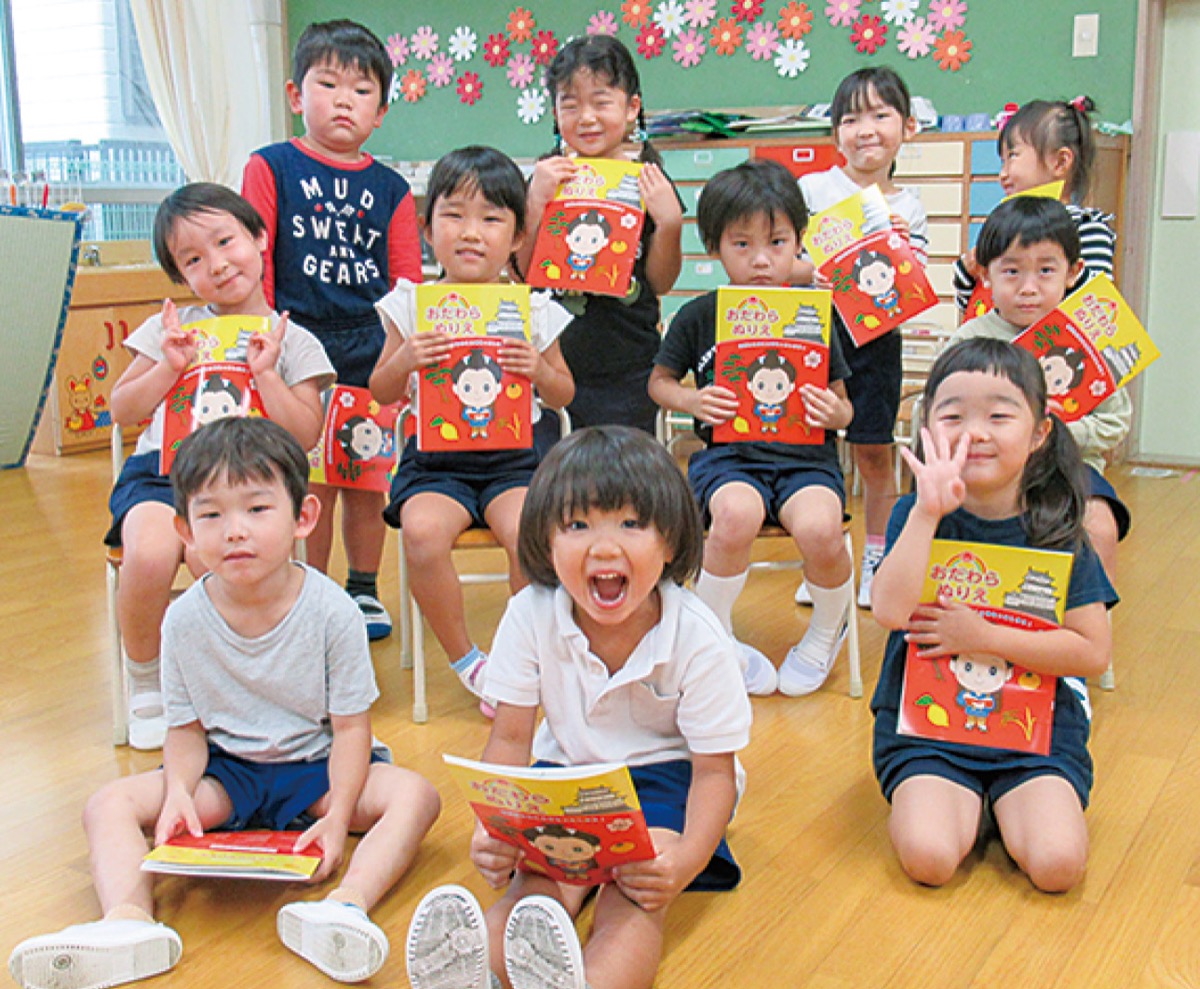 下中幼稚園では、11人の園児たちがぬりえを受け取った。久保寺佳香園長は「郷土の偉人や名産物などに楽しく触れる、とても良い機会です」と話していた。