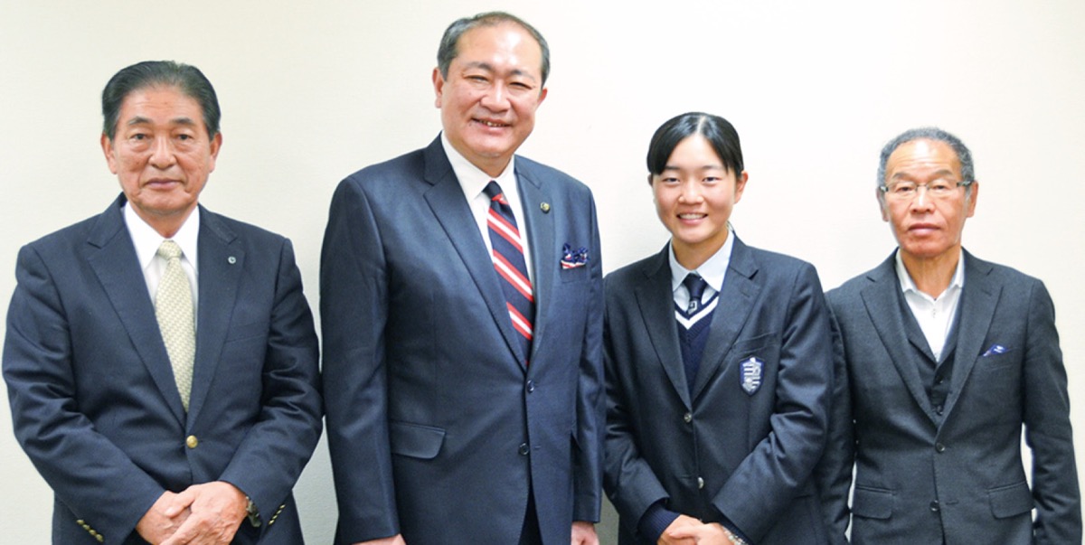 訪問には、祖父の佐藤義雄さんと母の美樹さん、小田原市ゴルフ協会の大野眞一会長が同席。義雄さんはゴルフが趣味で、心結さんが小1の時に「やってみるか」と聞きクラブ一式をプレゼントした。「子どもながらに真剣だった。ゴルフが好きだと感じた」と当時を振り返った。大野会長も小学生時代から心結さんを知っており「小田原として初の女子プロ誕生だと思う。ぜひ応援していきたい」と喜んだ。