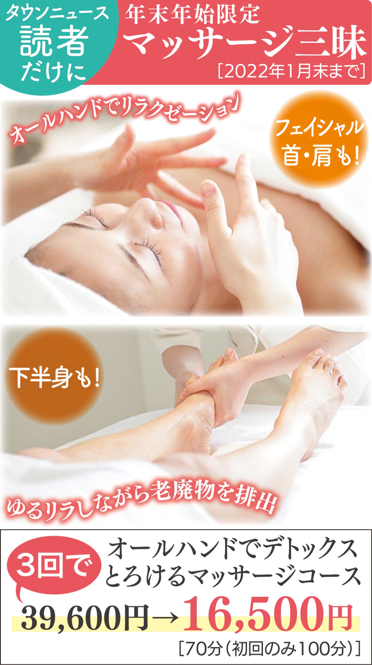 年末の疲れ、冷え、むくみなど、オールハンドのマッサージでスッキリ解消しませんか。