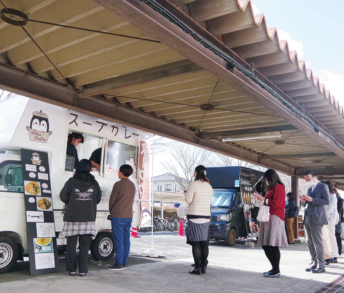 1月18日には市役所にスープカレーと焼き肉弁当が登場し、昼過ぎから密を避けた行列ができていた。市職員の一人は「スマホ決済ができる店も多く、できたてを素早く購入できるのも魅力だと思う」と話した。