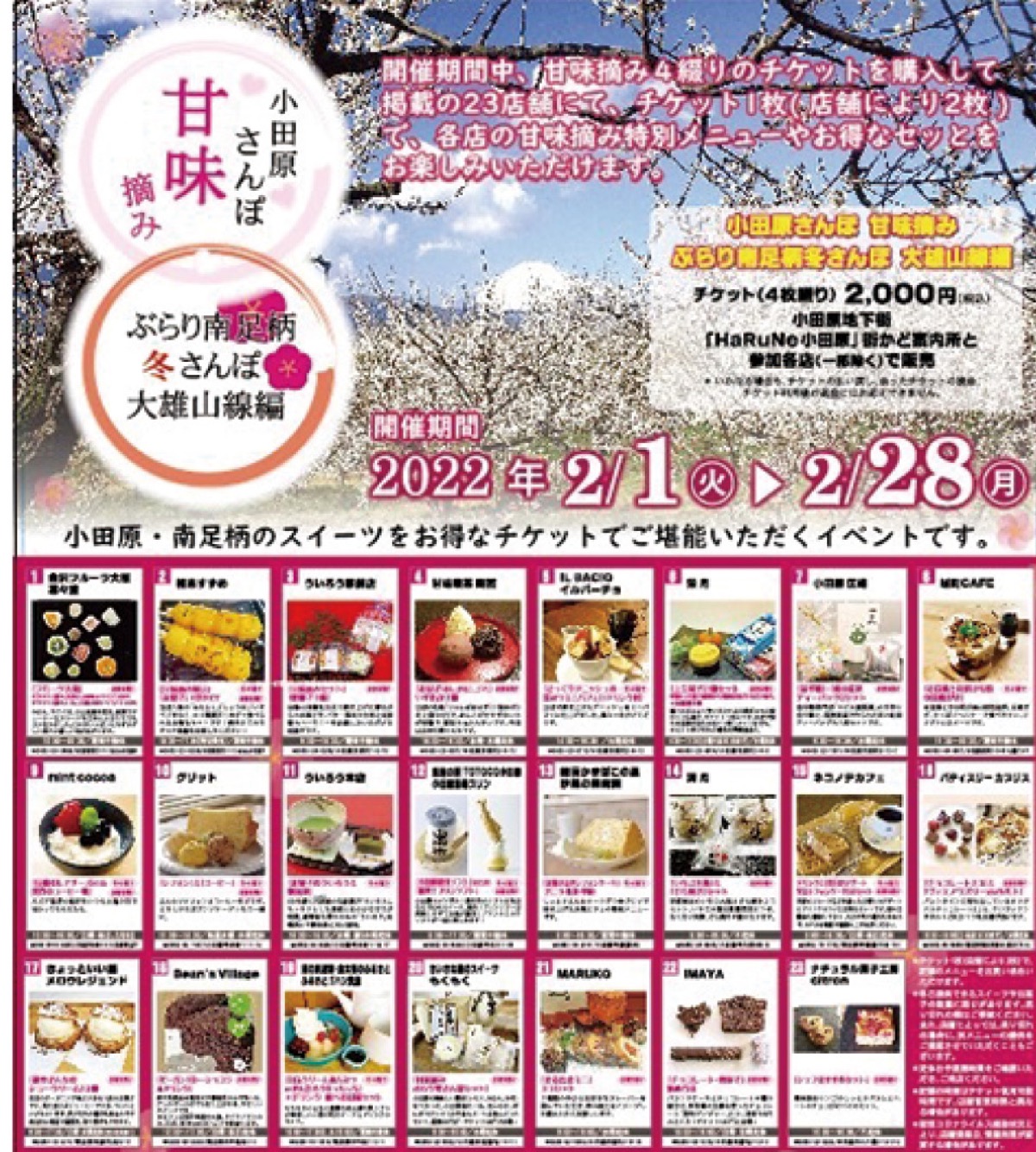 小田原・南足柄のスイーツが楽しめるイベント「小田原さんぽ甘未摘み・ぶらり南足柄冬さんぽ大雄山線編」が、2月28日(月)まで開催中。