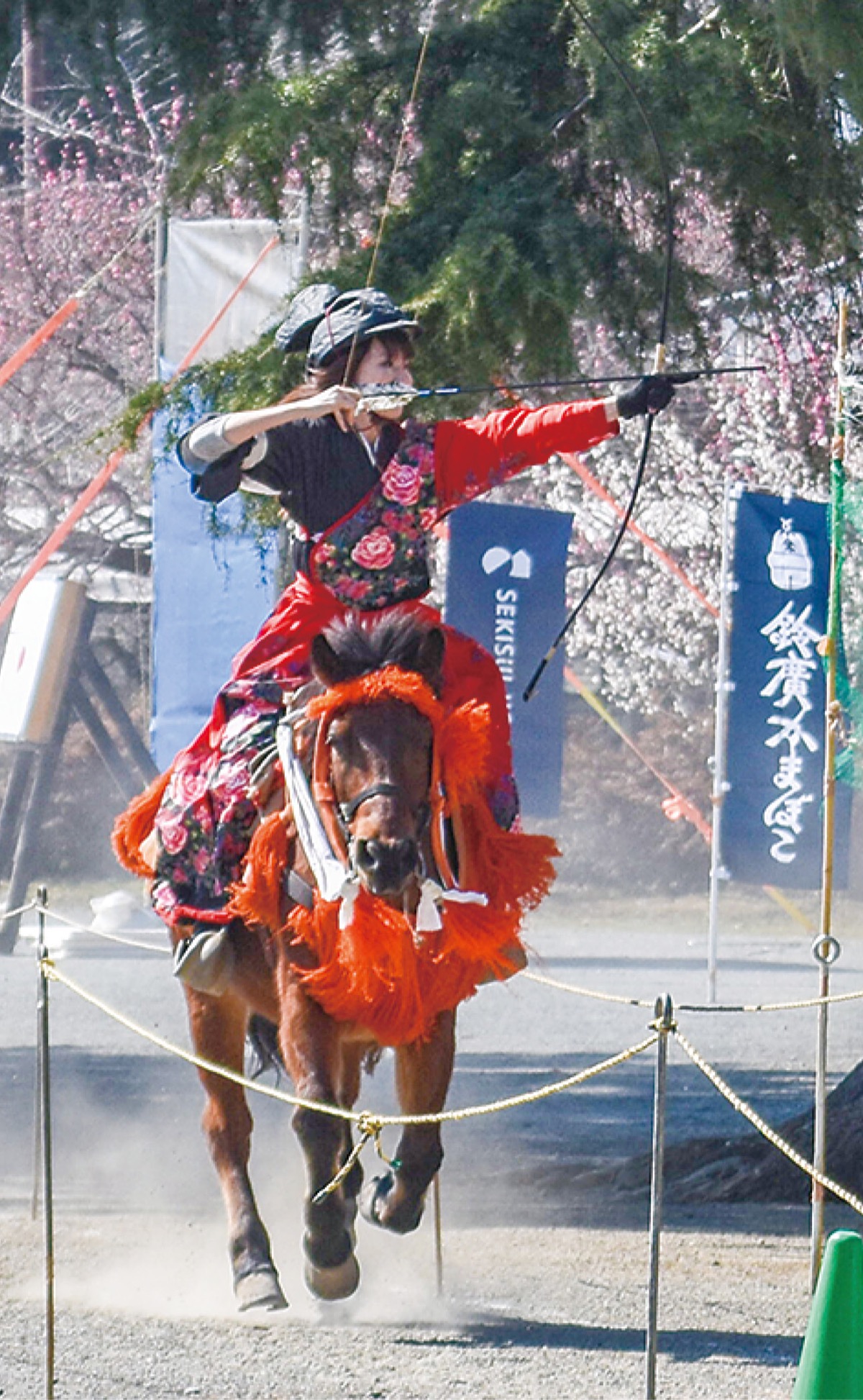 小田原城址公園二の丸広場で3月6日、第19回小田原城馬上弓くらべ大会が開催された。新型コロナの影響で、3月の開催は2年ぶりとなった。