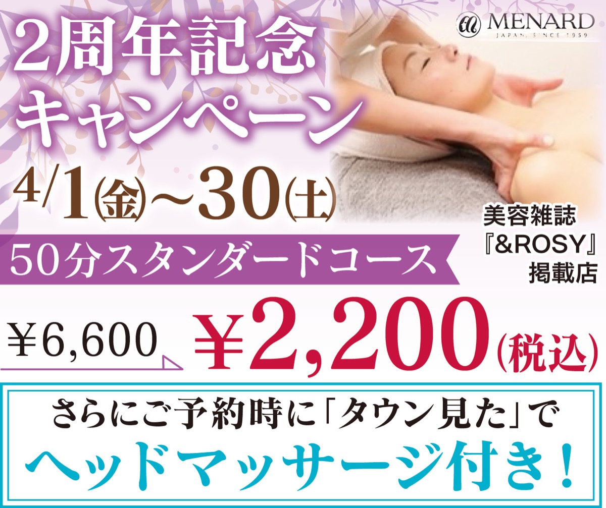 ダイナシティそばの「メナードフェイシャルサロン小田原鴨宮」が2周年を迎え、現在キャンペーンを実施している。