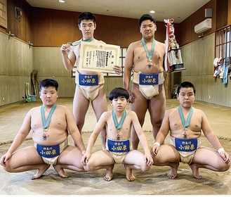 団体戦は50チームが出場、同連盟は予選ブロックを勝ち上がり決勝トーナメントへ。準々決勝で強豪の津幡町少年相撲教室(石川県)を3対2で下したが、準決勝の柏相撲少年団(千葉県)に2対3で惜敗。3位入賞が確定した。大将を務めた松崎圭吾さんは「特に小学生の緊張をほぐせるよう意識した。大きな大会で入賞できてうれしい」と振り返った。