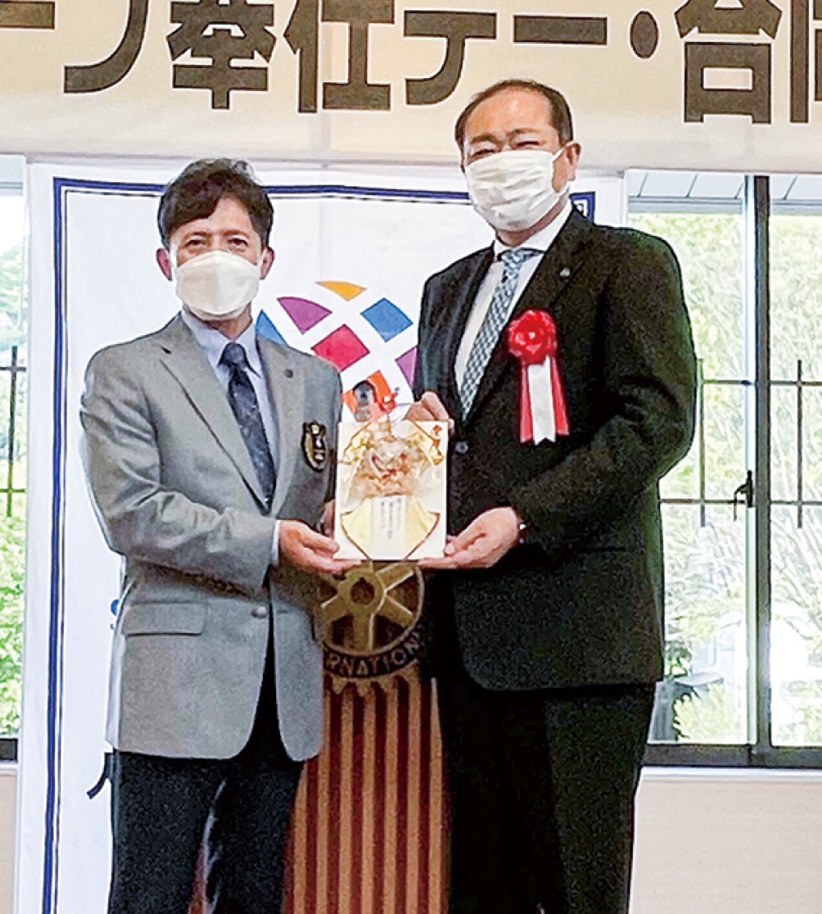 7クラブは当日、市内風祭の鈴廣かまぼこの里 鈴の音ホールで合同例会を実施。木村隆也ガバナー補佐(小田原RC(ロータリークラブ))から守屋輝彦小田原市長に、市ふるさとみどり基金への寄付(10万円)などが行われた。