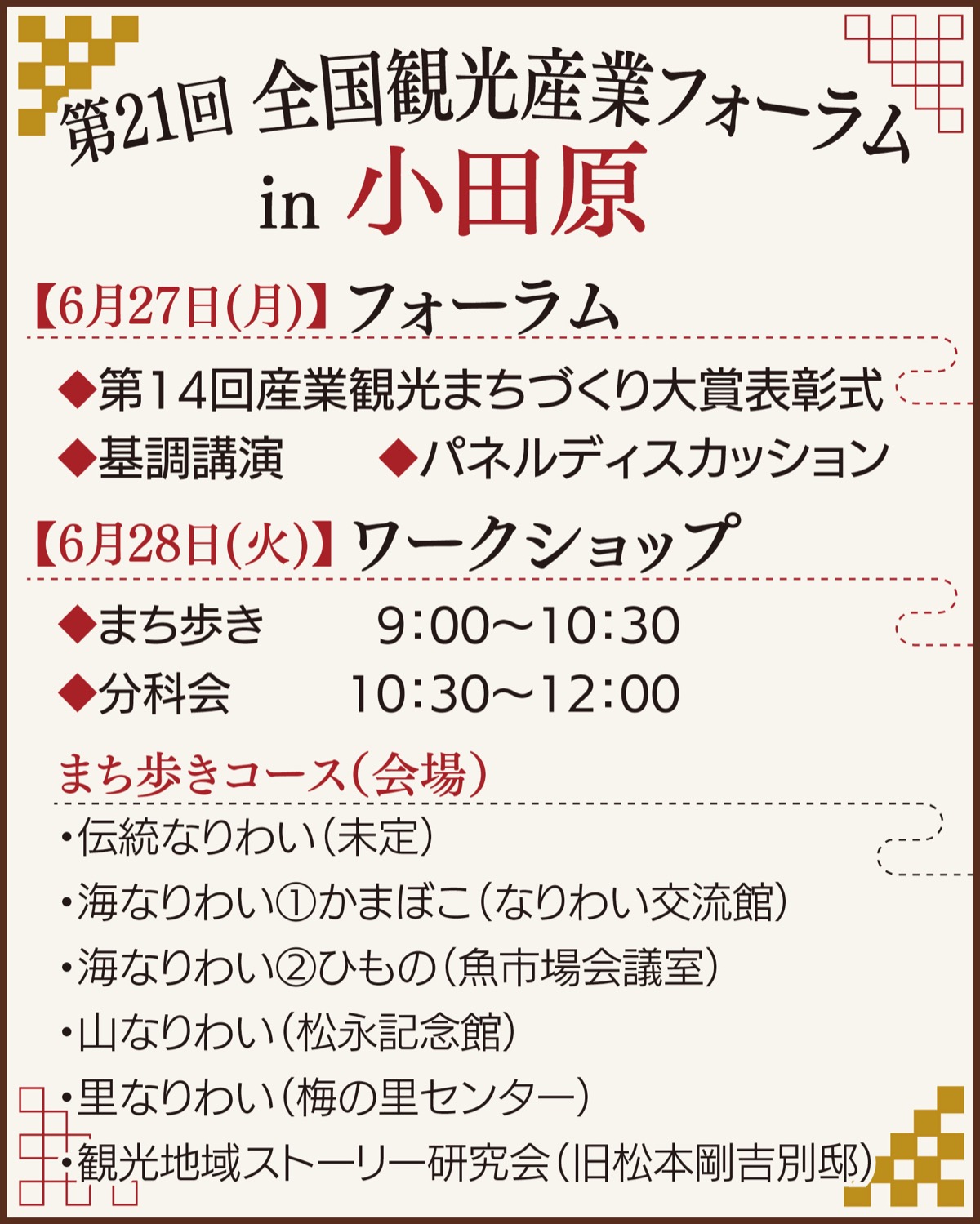 新型コロナの影響で延期されていた「第21回全国産業観光フォーラムin小田原」が、6月27日(月)・28日(火)に開催される(主催/小田原市観光協会、全国産業観光推進協議会ほか)。