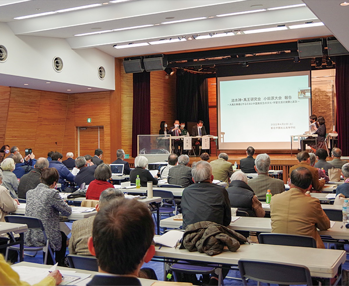 古代中国の夏王朝始祖で、黄河の治水を果たすなどした偉業が日本各地の碑にも刻まれている「禹王(うおう)」。その業績や遺跡を探る活動を長年行う「治水神・禹王研究会」の全国大会が4月2日に新名学園旭丘高校(小田原市城内)で催された。