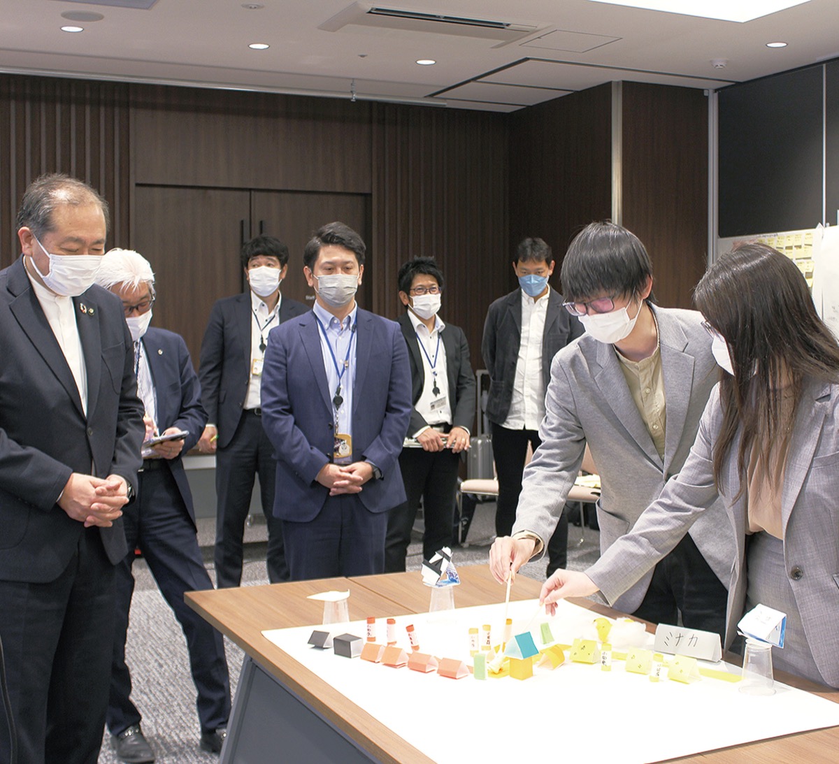 同社は同施設内のホテル「天成園 小田原駅別館」でワーケーションの実証実験実施の縁で、初めて自治体の協力を得た研修を実施。「若者をターゲットにした、小田原市の観光」をテーマに新入社員11人がグループに分かれて市内を回り、ユーザー視点に立って課題やニーズを発見し、観光プランを練った。発表した社員は「(心が揺さぶられる)『エモい』写真や動画を撮りたくなる体験を提供し、SNSで拡散してもらうことが大事」などと話した。