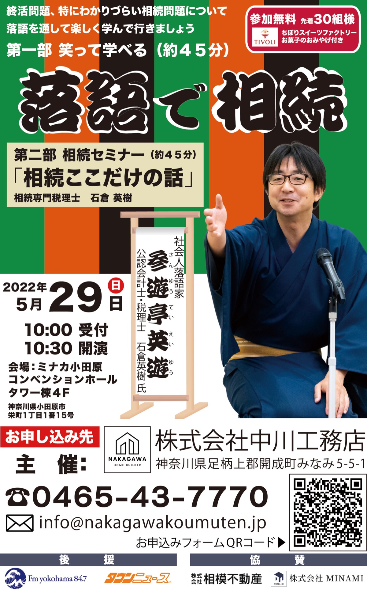 このセミナーでは、堅苦しい話は一切無し!「笑って聞いているうちに、相続のポイントが分かりました」。そんな声が多数寄せられている注目イベントが5月29日(日)、ミナカ小田原コンベンションホール(タワー棟4階)で開催決定!