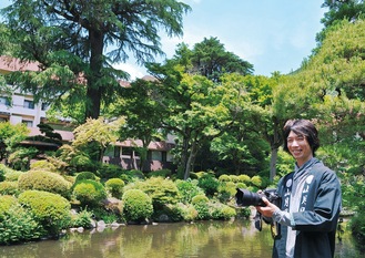 初夏の澄み渡る青空と、みずみずしい新緑。箱根湯本の温泉旅館、吉池旅館の庭園「山月園」はこの時季、青葉若葉に彩られている。同旅館の施設管理課長の高嶋宏一さん(42)は、樹木や花々の手入れを行う傍ら、入社以来15年間にわたり自前のカメラで写真を撮り続けている。