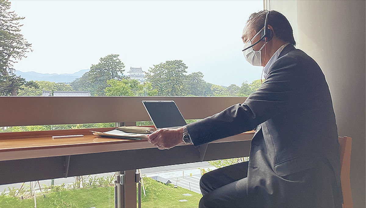 神奈川県の黒岩祐治知事が5月20日、小田原市内の施設を視察に訪れた。合間時間には県庁の職員とパソコンを使い、オンラインで打ち合わせを行う様子を披露するなど、県のリモートワーク推進姿勢をPRした。