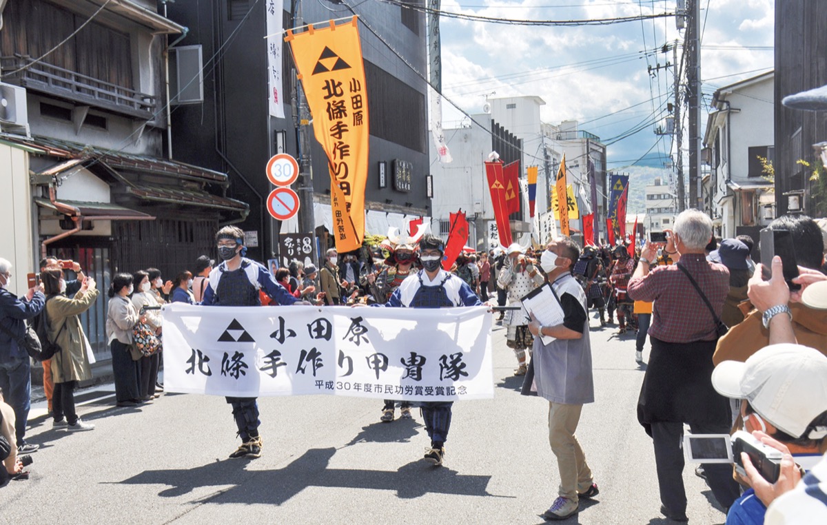 小田原市内最大の観光イベント「小田原北條五代祭り」は今年「北條五代 歴史と文化の祝典」として5月3日に開催された。2年前は中止、昨年は規模縮小での実施となったが、今年は感染対策を講じながら、武者隊パレードを3年ぶりに再開。その雄姿に沿道から拍手や声援が送られた。