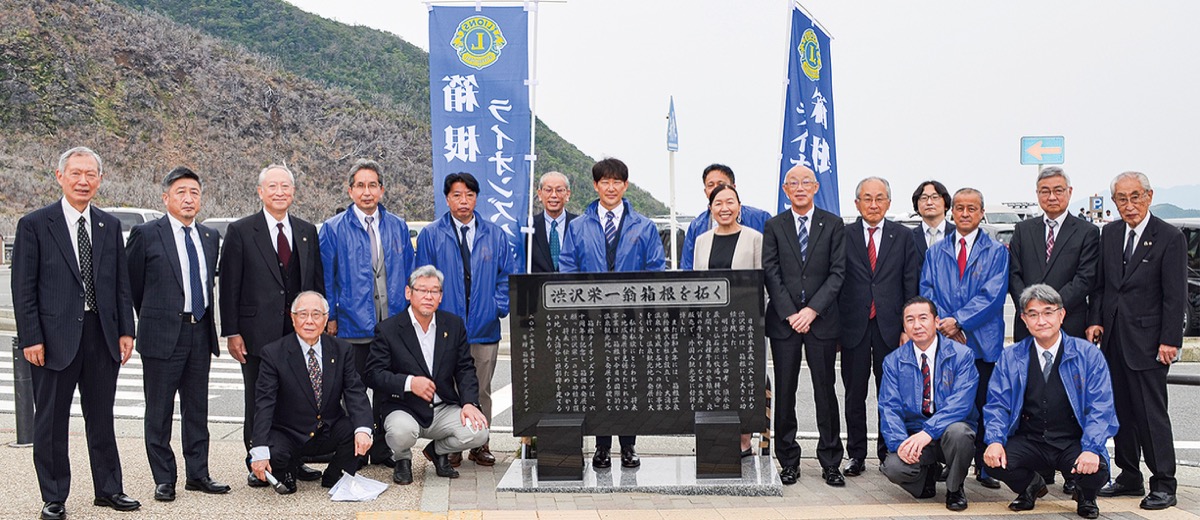 記念事業では、顕彰碑「渋沢栄一翁箱根を拓く」を箱根温泉供給株式会社に寄贈。渋沢栄一は1930年に同社を設立し、大涌谷温泉の造成と各地への供給事業を行った。同クラブでは温泉観光地の発展に寄与した渋沢栄一の志と功績を讃え、将来へ伝えることを目的に、大涌谷園地内に顕彰碑を建立した。功績を紹介する約10分の記念動画も作成し、箱根町に寄贈した。