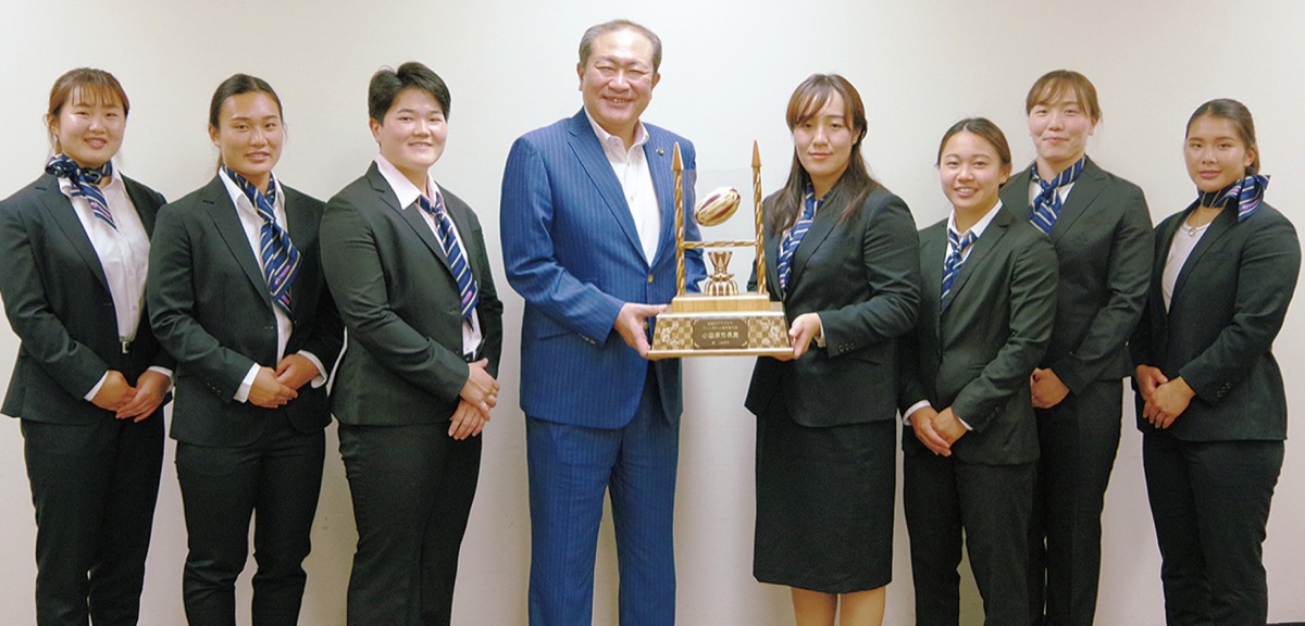 第8回全国女子ラグビーフットボール選手権大会を制した横河武蔵野アルテミ・スターズの選手らが6月3日、守屋輝彦小田原市長を表敬訪問した。