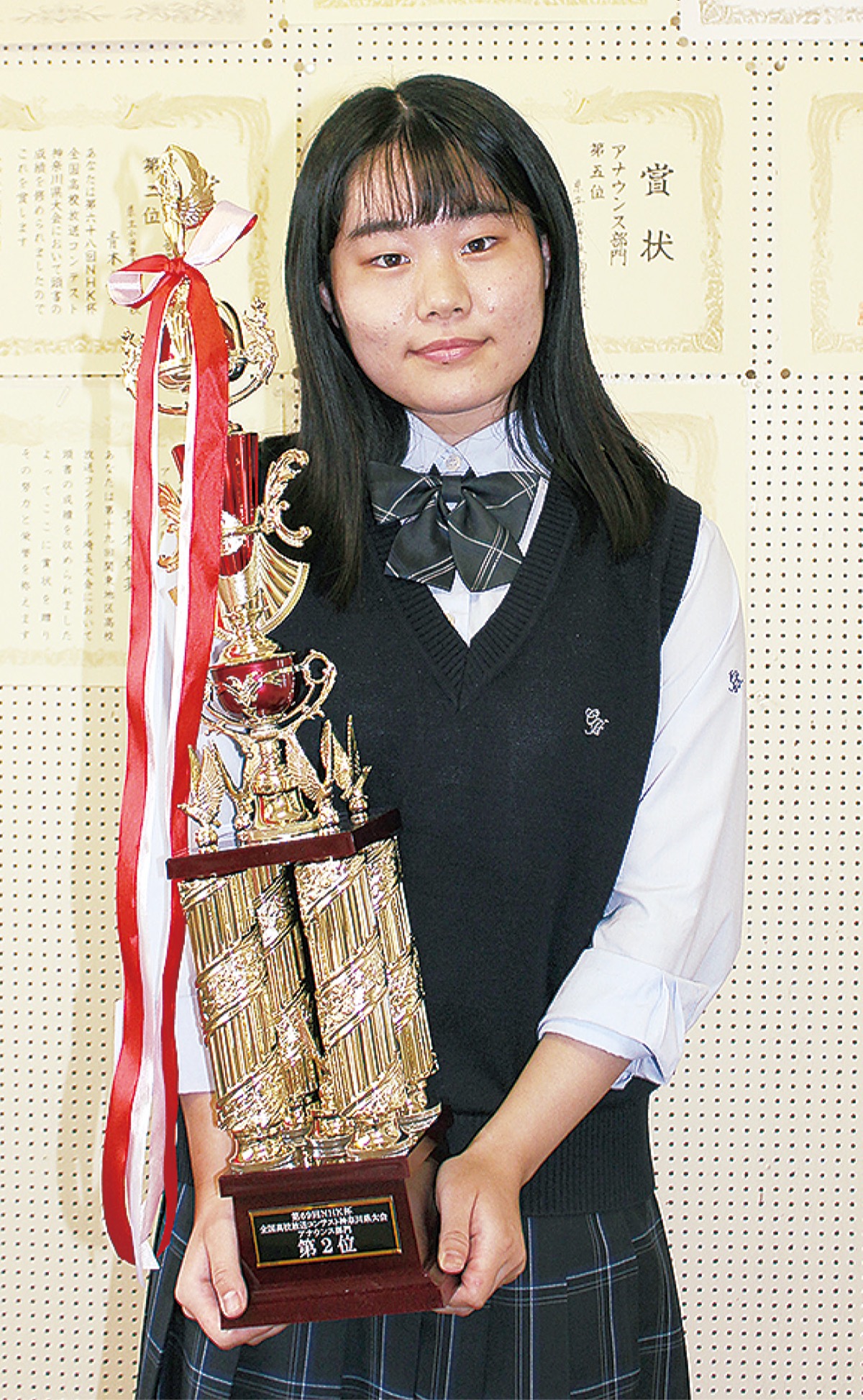青木春菜さん(3年)が昨年に続き、アナウンス部門で2位に入賞、全国の舞台に挑んでいる。