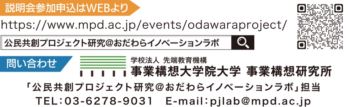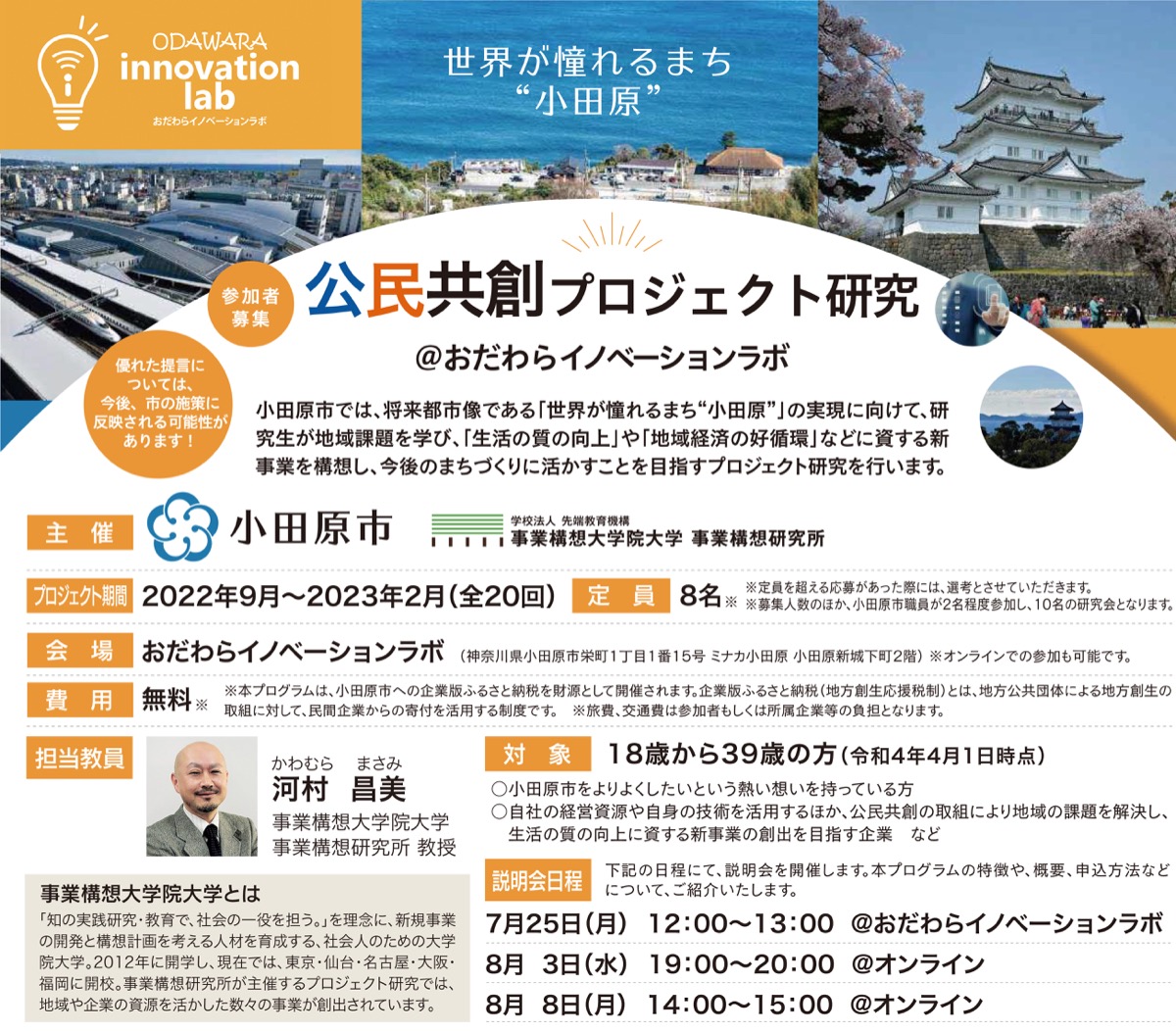 小田原市が地域課題の解決に向けて、今年9月から「公民共創プロジェクト研究@おだわらイノベーションラボ」をスタートする。現在、参加者を募集している。