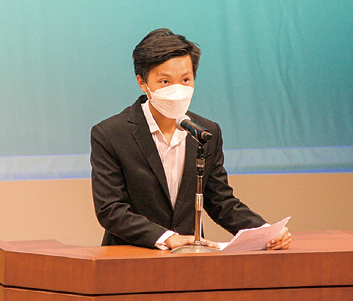 入学生代表としてあいさつしたベトナムからの留学生トゥ コン フォンさんは「コロナのせいで日本に来るのが1年遅れたけれど、子どもの頃から日本が大好きなので夢が叶ってうれしい。元気良く笑顔で頑張りたい」と日本語で語っていた。