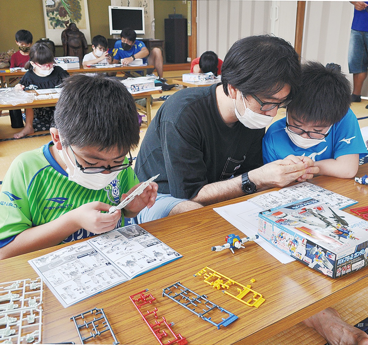 多古公民館(小田原市扇町)で8月21日、人気アニメ「機動戦士ガンダム」のプラモデル作りと撮影会が行われた。ガンダムの生みの親、アニメーション監督の富野由悠季さんが多古地区出身で、そのことを子どもたち伝えながら、ものづくりの楽しさも体験してもらおうという企画。