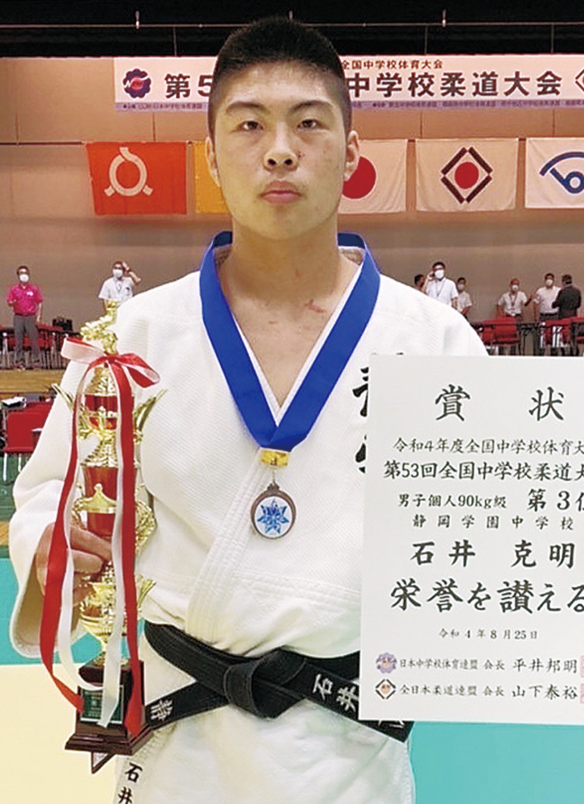 静岡学園中学3年の石井克明さん(小田原市東町在住)が、全国中学校柔道大会(8月22日〜25日/福島県)に出場し、個人戦3位、団体戦ベスト16の好成績を残した。
