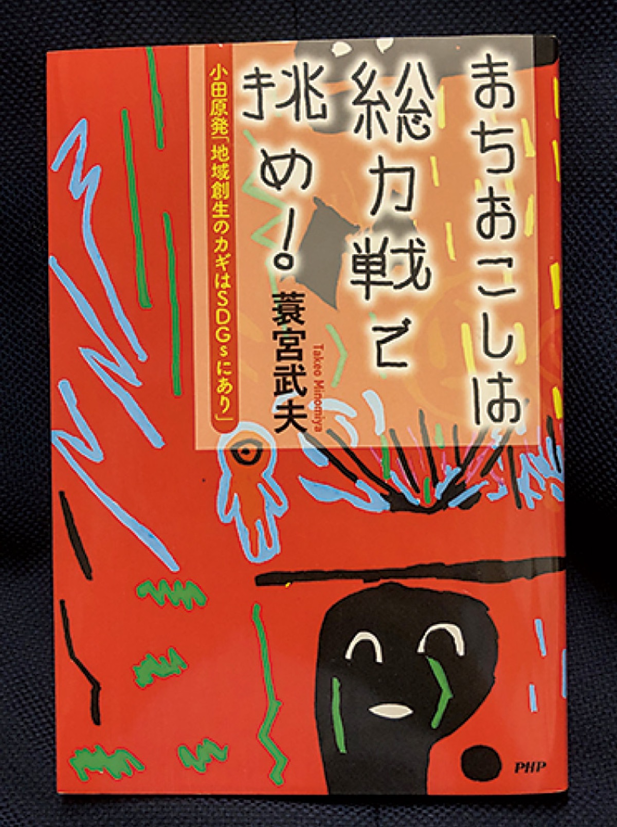 ほうとくエネルギー(株)代表取締役の蓑宮武夫さん(小田原市荻窪在)が9月上旬、新著『まちおこしは総力戦で挑め!〜小田原発「地域創生のカギはSDGsにあり」〜』を出版した。PHP研究所/四六版並製・1650円。題字、カバー装画、扉装画は、認定NPOアール・ド・ヴィーヴル(小田原市)の所属作家が手掛けた。
