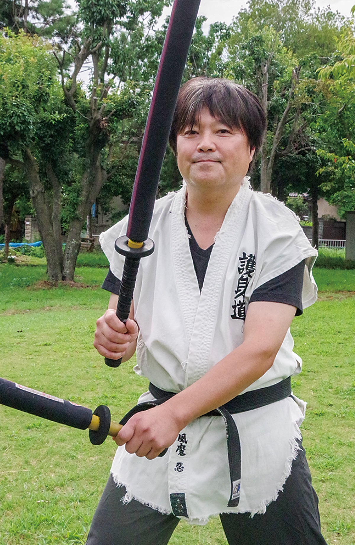 普段は会社に勤めながら、藤沢市で週1回のスポーツチャンバラ教室を開く梶さん。「風魔忍」はスポーツチャンバラなどに関わる時の別名だ。