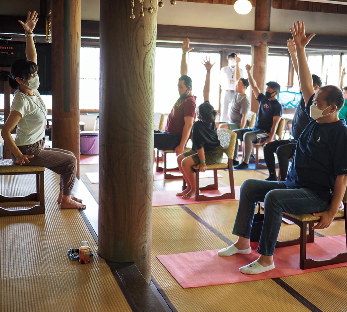 国府津にある寶金剛寺で実施された「優しいシニアヨガ」には、守屋輝彦小田原市長も参加。「体も心も整えることができた」と話していた。イベントを企画したインストラクターの栗原貴久さんは「小田原を世界に伝えるきかっけにしたい。今後も続けたい」と意気込みを語った。