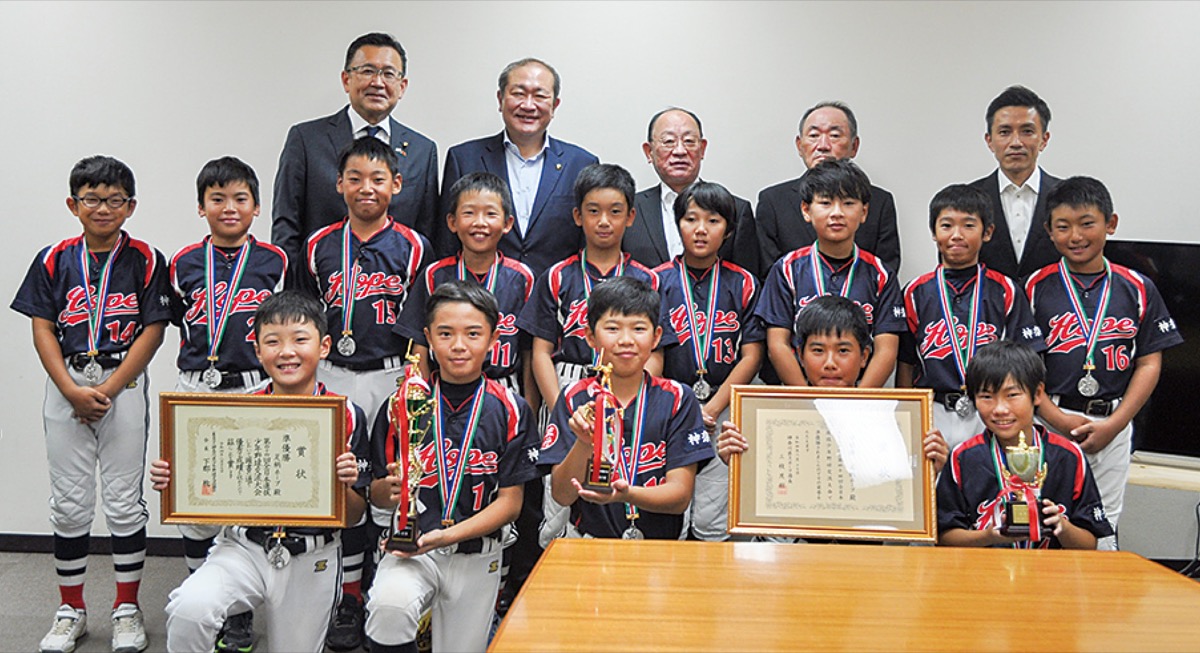 小学生軟式野球チーム「足柄ホープ」が8月に開催された全日本選抜少年野球交流大会で準優勝を果たし10月4日、守屋輝彦小田原市長を表敬訪問した。