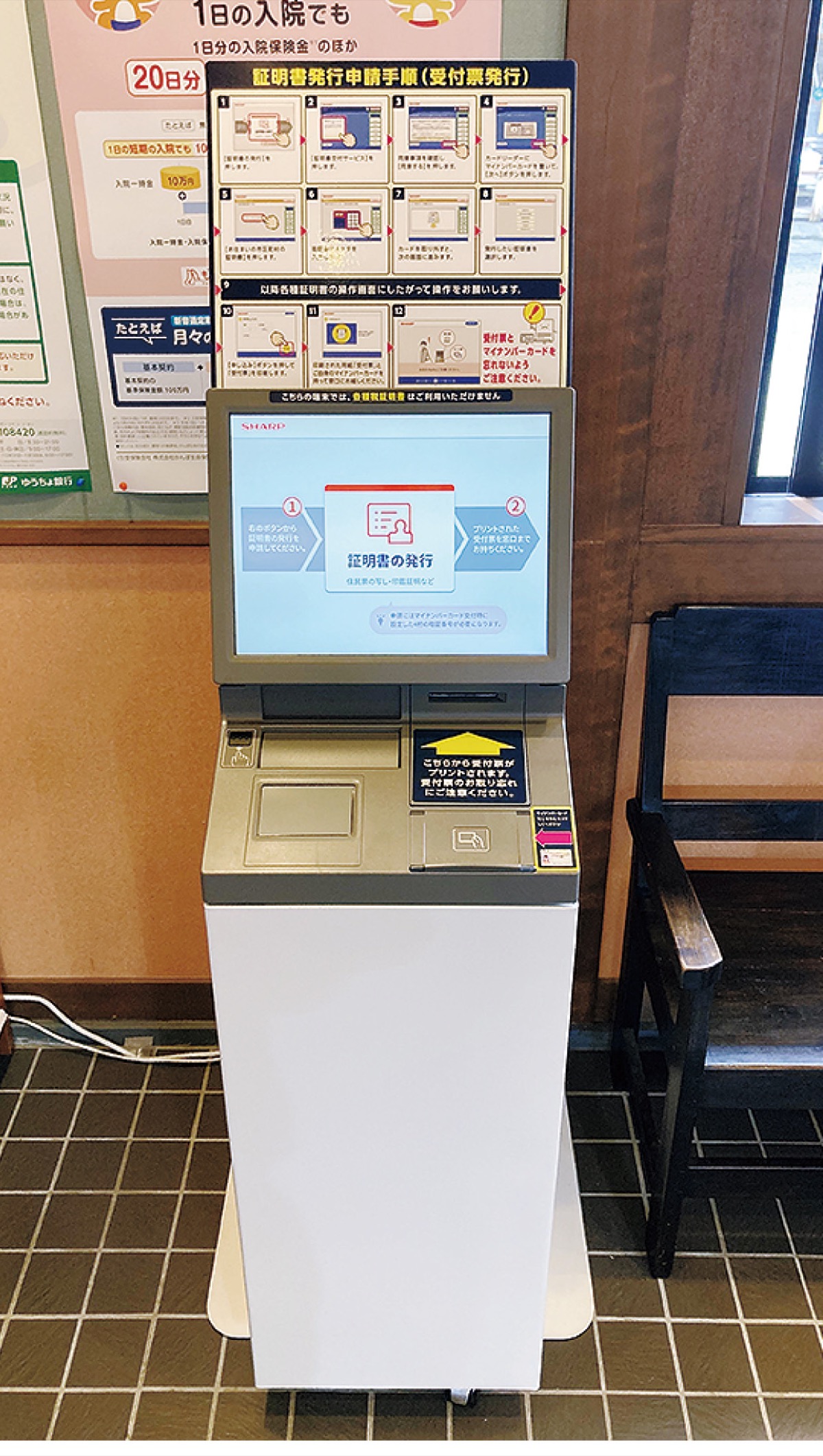 これまでも市内にある10郵便局では証明書交付サービスを行ってきたが、申請書類記入と郵便局職員による市役所の取次ぎが必要だった。今回は5局に設置された申請用端末から受付票を出力し、窓口に提出するだけで証明書が交付される仕組み。申請手続きがデジタル化されることで、市の事務を介さずに書類発行まで完結させることができるメリットもある。