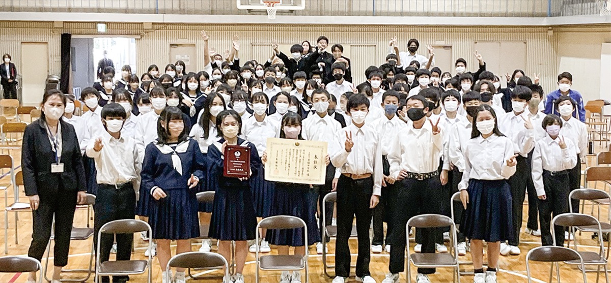 駅前清掃は、1961(昭和36)年に同中学校が社会福祉教育研究指定校になったことをきっかけに、生徒会の活動としてスタート。当初は朝に実施していたというが、近年は月1回放課後に1学年が集まり、駅前を清掃するようになった。「外から来る人に美しい町と伝えたい」との思いから、ごみを拾うだけでなく、道路のガムをヘラで取るなどし、景観を守ってきた。