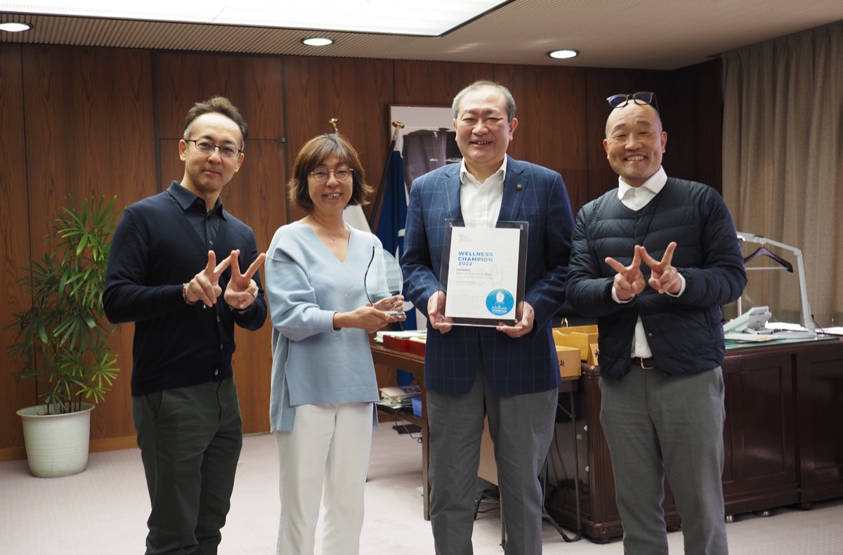 世界140カ国が参加したウェルネスなライフスタイルを啓発するイベント「国際スポーツ&ウェルネスウィークエンド」が9月に開催され、小田原市内での取り組みが「モーストアクティブシティインジャパン」を受賞した。同賞は国内で最も積極的に活動した地域に贈られる賞で、国内では唯一の受賞。イベントを企画した「小田原の底力実行委員会」(栗原貴久代表)らが、10月31日に小田原市役所を訪れ、守屋輝彦小田原市長に報告した。