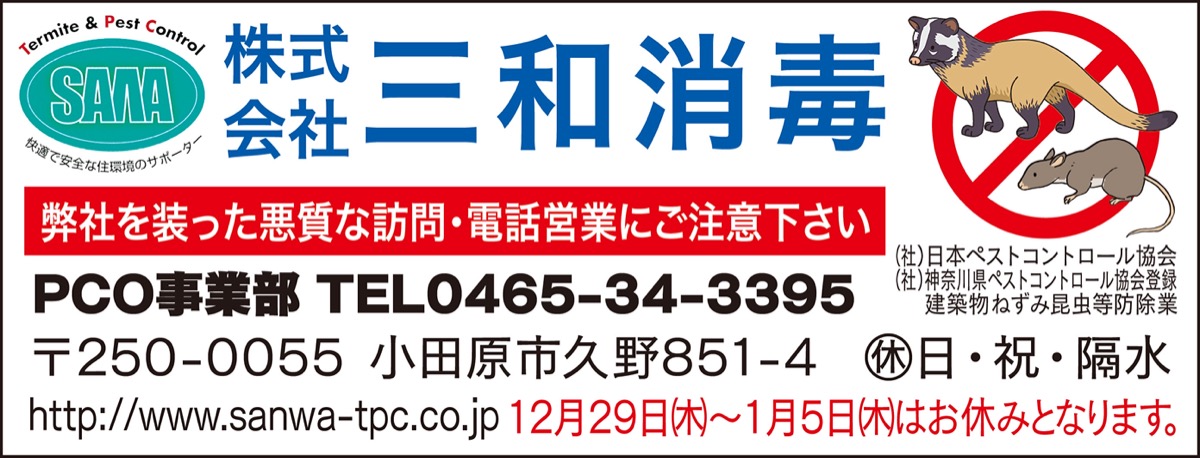 寒さが増すこの季節。天井裏から物音が聞こえたことはありませんか?また、天井に染みが現れたことはありませんか?この様な現象の不安に応えてくれるのが40年の信頼と実績の三和消毒だ。