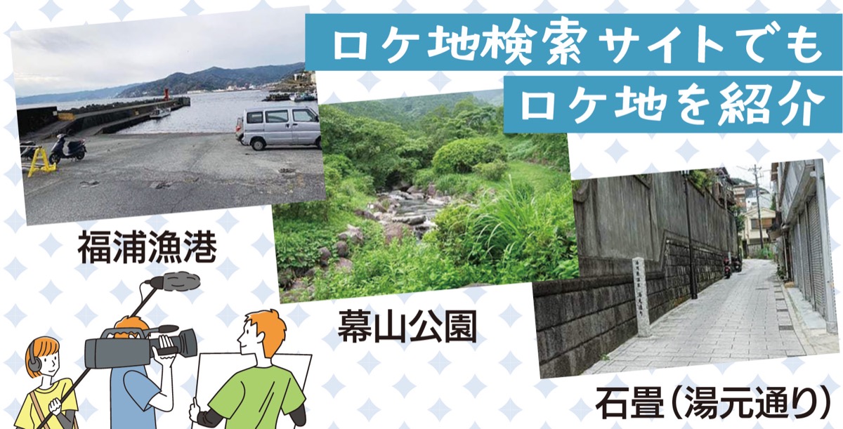 ロケ地検索サイト「ロケなび!」にも登録し、「幕山公園」や「福浦漁港」などの名所をはじめ、「土産物屋」「雰囲気のいいバス停」など、町内の撮影可能な場所を網羅。ワンストップで撮影相談ができるほか、エキストラやロケ弁、ケータリング協力にも対応し「ロケ隊も癒されるまち」として業界で認知されるように。