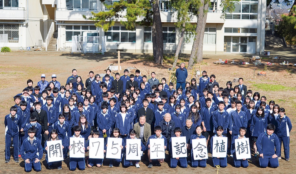 同校卒業生で、同窓会長の山本三希雄さん(84)は「自分が通っていたころはマツでいっぱいだった。卒業の記念品を考えていたのでちょうど良いタイミング」と、学校と協議を重ね記念植樹を実現させた。