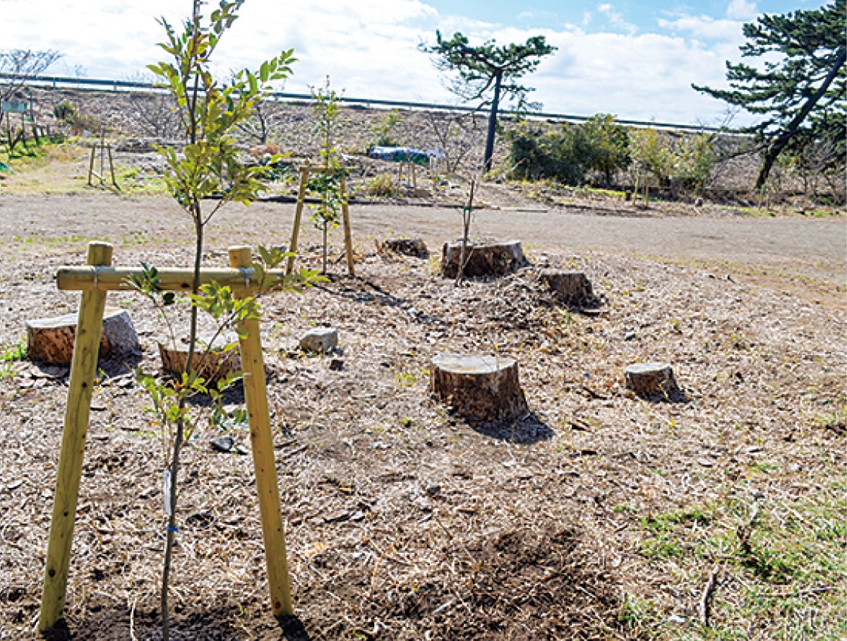 同校の松林は1947年の開校以来、海辺からの砂を防ぎ、校舎に日陰を作る役割を果たしていた。ところが5年ほど前から松くい虫が発生。その影響でマツは、水を吸い上げる働きが阻害され枯れ始めていた。倒木する前にと、昨年には約100本を伐採していた。
