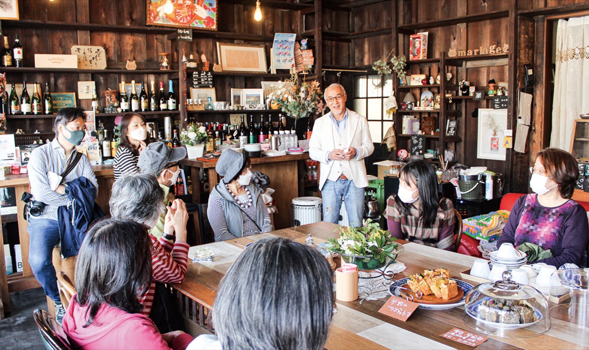 約20人の参加者は1927(昭和2)年建造の登録有形文化財を活用したカフェ「マリアージュ」でスイーツを楽しんだ。参加者は「もともと知っているエリアではあったが、地元の方が案内してくれて新しい発見があった。みんなで盛り上げようという雰囲気で楽しかった」と話した。