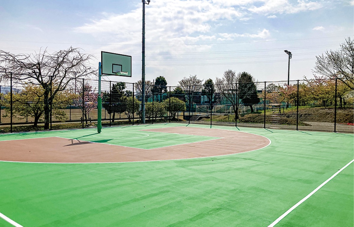 同コートは公園内スポーツ広場の横のスペース。小田原バスケットボール協会が2021年5月、同協会創立70周年記念事業の一環でゴール1基を寄贈したことなどにより改修が進められた。新コートはこれまでの土からアスファルトで舗装され、ボール飛び出しを防ぐフェンスも設置された。