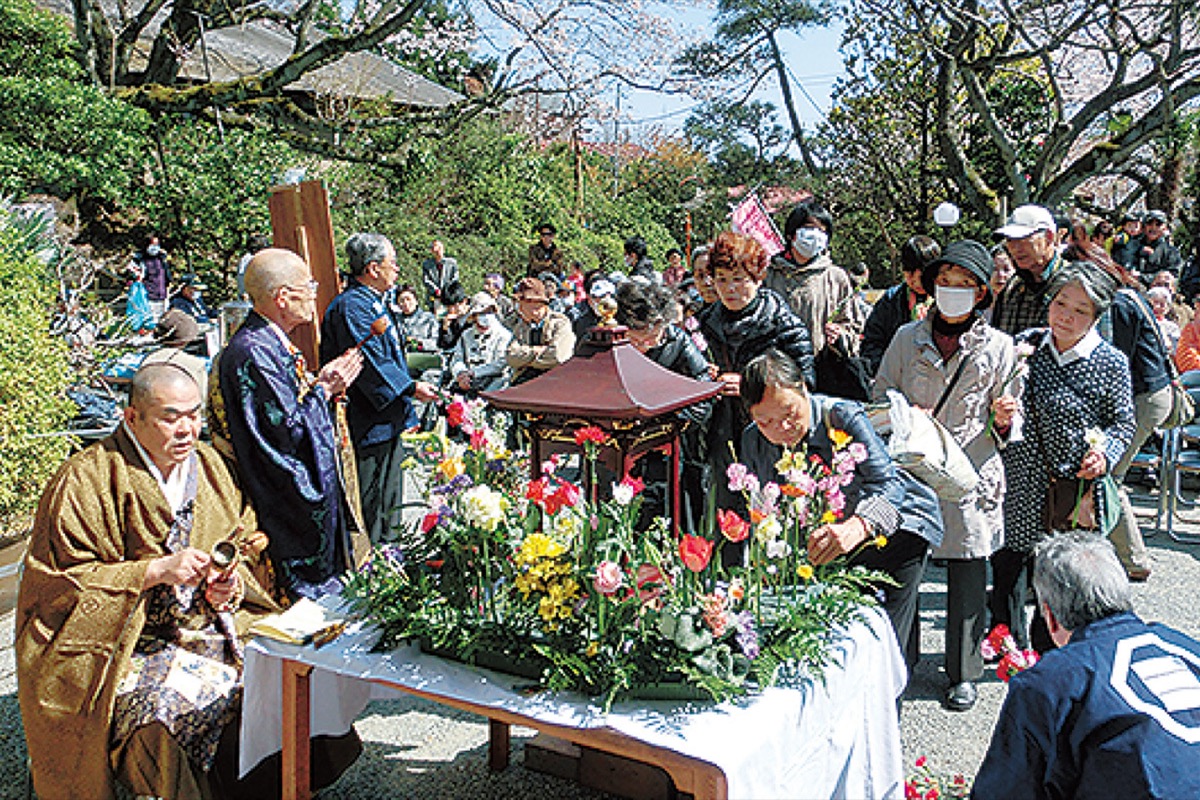 花まつり後は、境内を開放。敷物、飲み物、食べ物を持参して、自由に花見ができる。甘茶の無料サービスもある。三浦住職は「水筒やペットボトルをご持参のうえ、ぜひ甘茶をお持ち帰りください。檀信徒以外の方の来場も大歓迎です」と話している。問合せは光明寺 0465・47・3203。