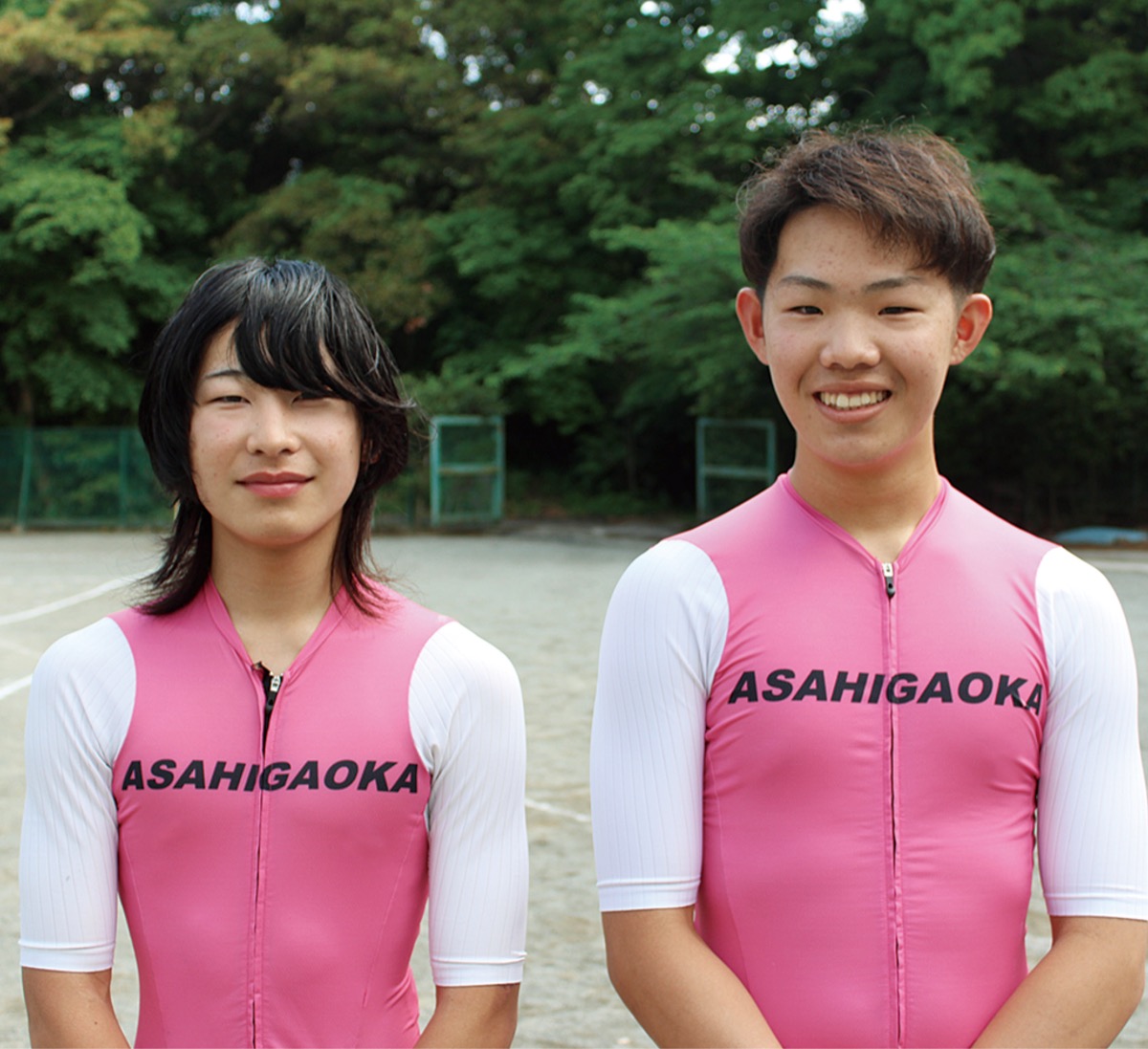入学以前からレース会場などで顔見知りだったという二人。偶然自転車店で再会し、同じ高校に進学することが分かった。練習拠点は異なるが、お互いが良きアドバイザーという。「目立つように」と選んだピンク色の高校名入りユニフォームを身にまとい、好敵手として切磋琢磨してきた。上位入賞しインターハイ出場を目指す。