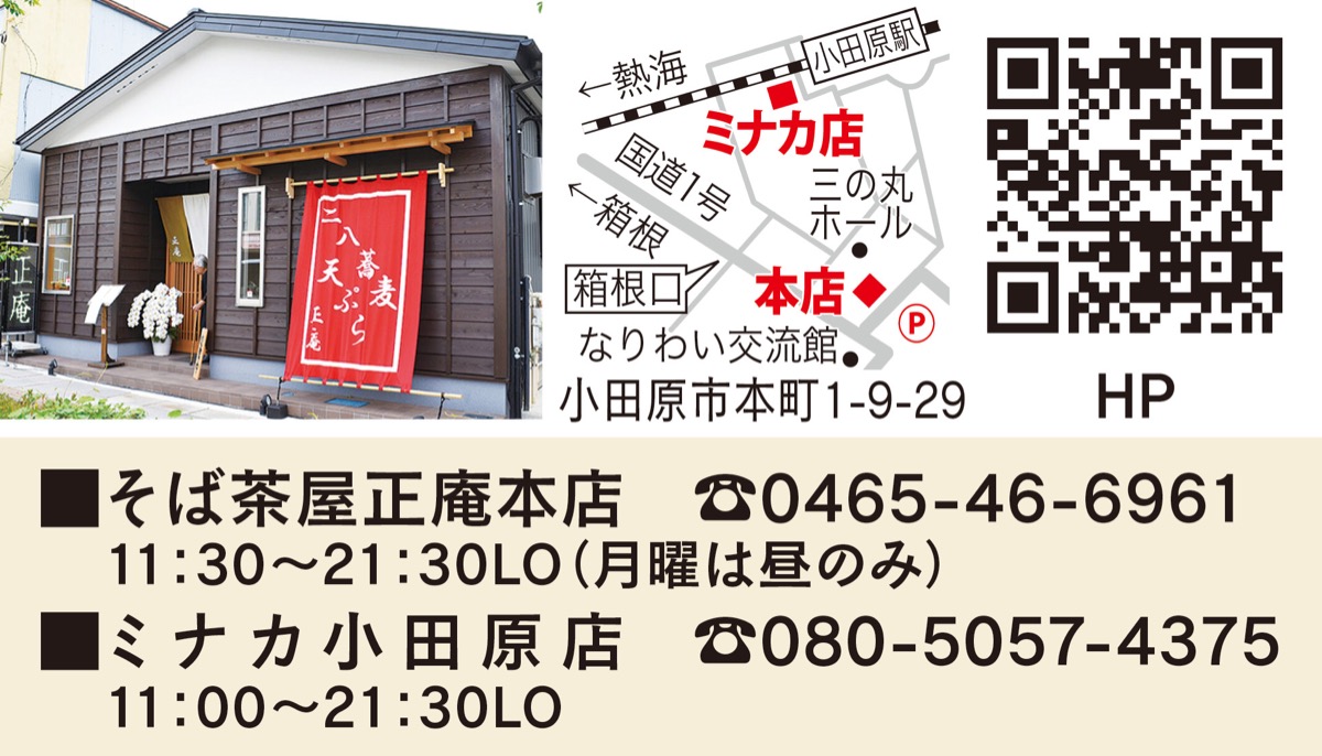4周年を迎えた、香り高い二八蕎麦が味わえる「そば茶屋 正庵」。「小田原ならではのそばの宴会を」と、多彩なメニューを揃えている。
