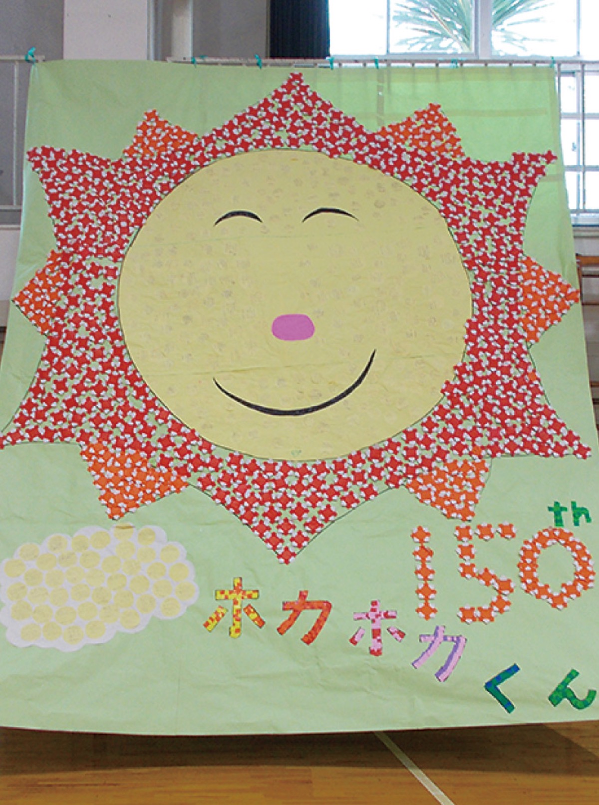 吉浜小学校では、記念事業として5月12日に日本ペイント(株)(東京都)、フジミ(株)(小田原市)などの協力で「し・あ・わ・せ」ペンキアートを実施した。