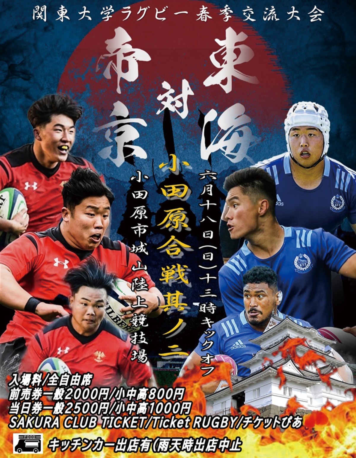 関東大学ラグビー春季交流大会として6月18日(日)、城山陸上競技場(小田原市)で東海大学対帝京大学の一戦が行われる。主催は関東ラグビーフットボール協会、主管は小田原市ラグビーフットボール協会など。