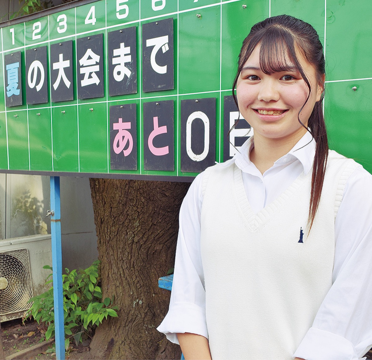 バッティングマシンのボール入れやノックのサポート、バットやヘルメットの管理まで、各学年に2人いるマネジャーが担う。兄を応援していたときよりも選手に近い距離にいる今、歯を食いしばり悔し泣きする部員の姿も間近に目にする。「努力を見てきた分、最後までやりきってほしい。今年のスローガン『躍進』の通り、進んでいきます」と意気込む。